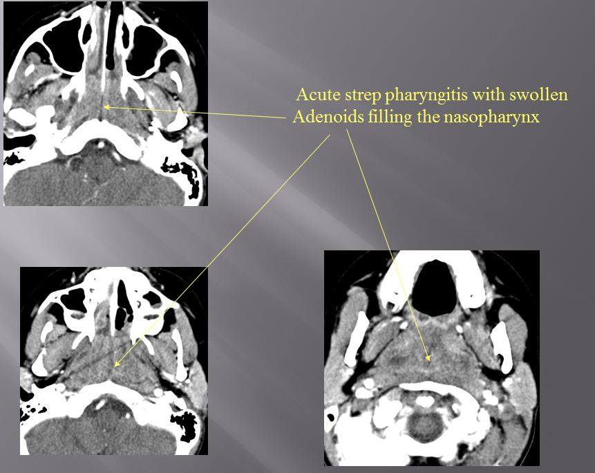 There is excessive enhancement or thickening of the mucosa or hypertrophy of the lymphoid tissue in the nasopharynx.