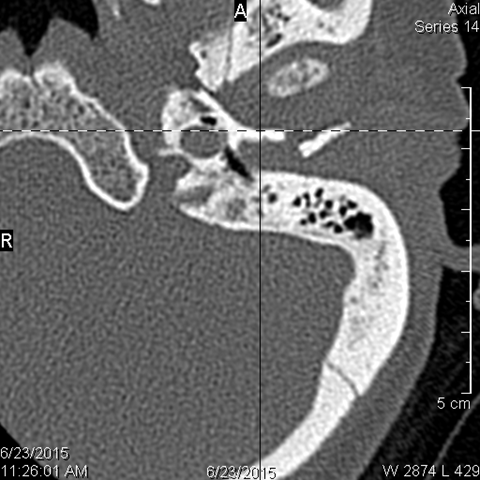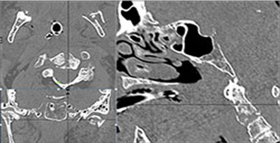 Non-contrast CT of the maxillofacial region performed with 0.5-1.0 mm thick sections in the axial plane and reformatted 3D and/or in the coronal and sagittal planes and viewed interactively in three dimensions at the computer workstation.