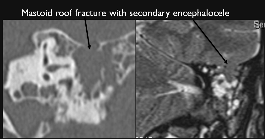 Severe craniofacial trauma with probable temporal bone fracture.Exam