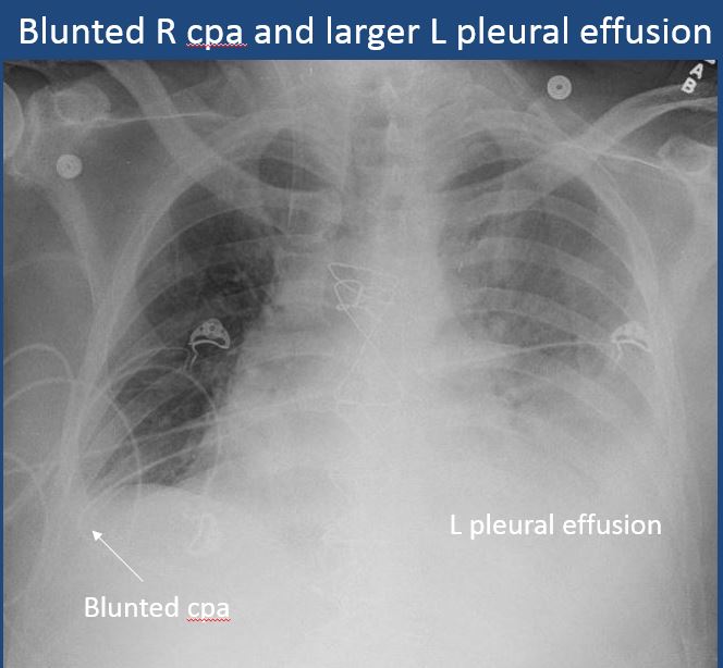 There is a pleural effusion or blunting of the costophrenic angle. [Yes/No]