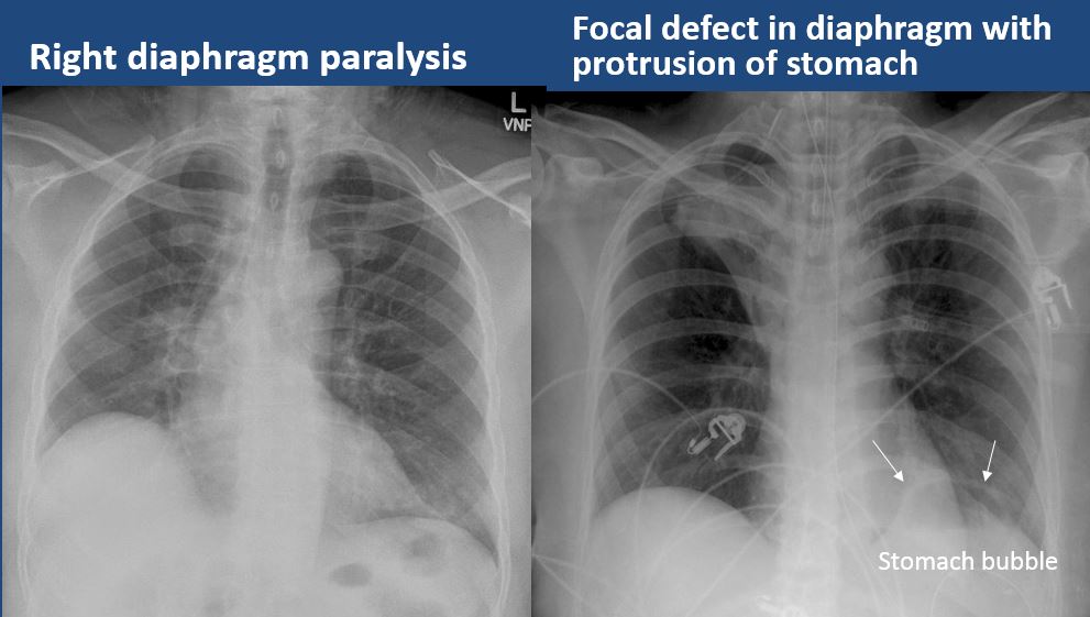 There is elevation, depression, or contour abnormality of the right or left hemidiaphragm. [Yes/No]