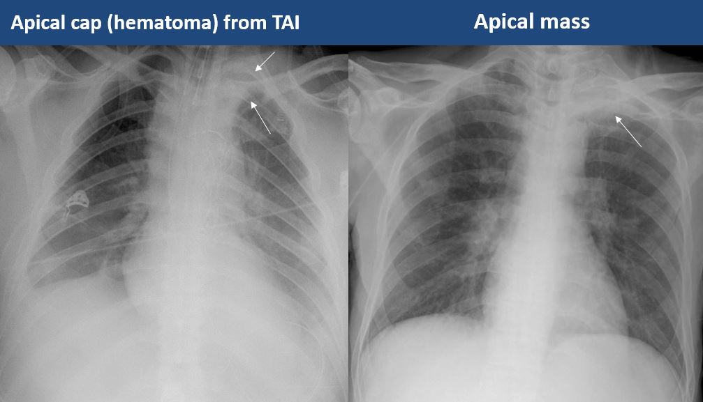 There is asymmetric pleural thickening or capping of the apices. [Yes/No]