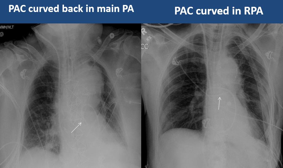 There is a PAC in place that is not in a main pulmonary artery or is otherwise abnormal. [Yes/No]