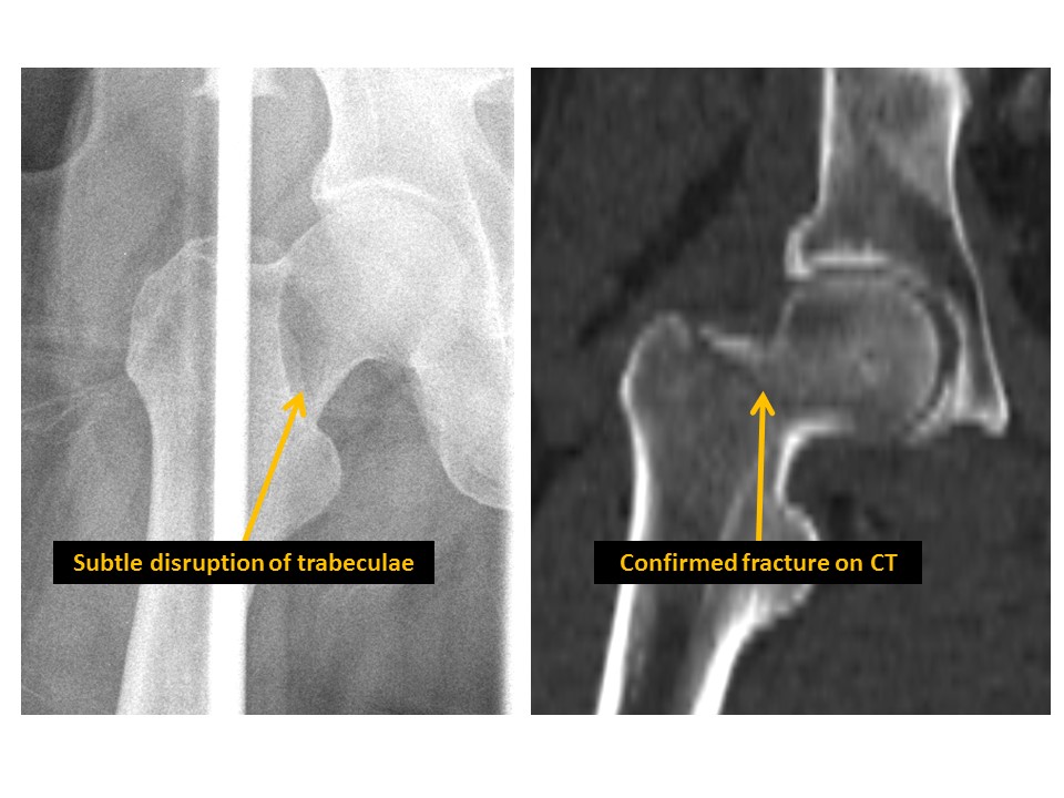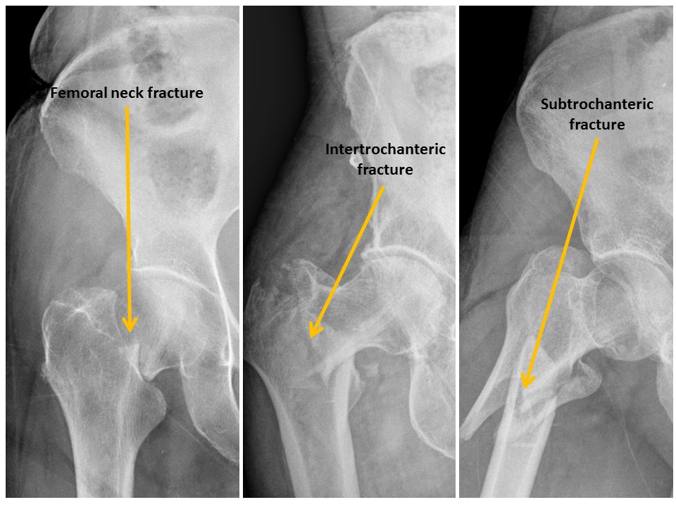 There are fractures of the femoral neck, intertrochanteric region, or subtrochanteric region. [Yes/No]