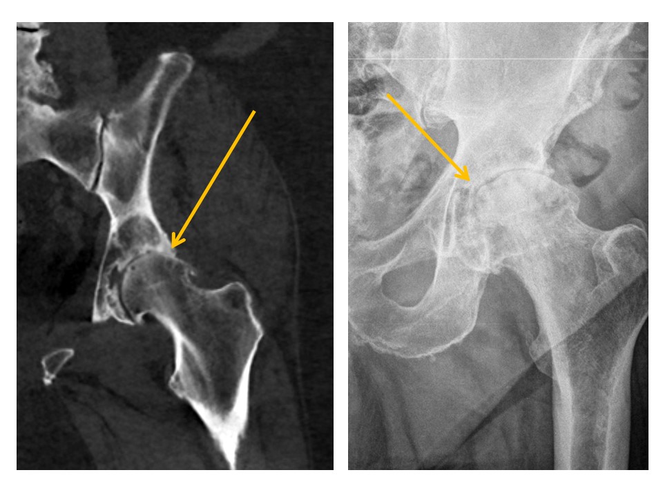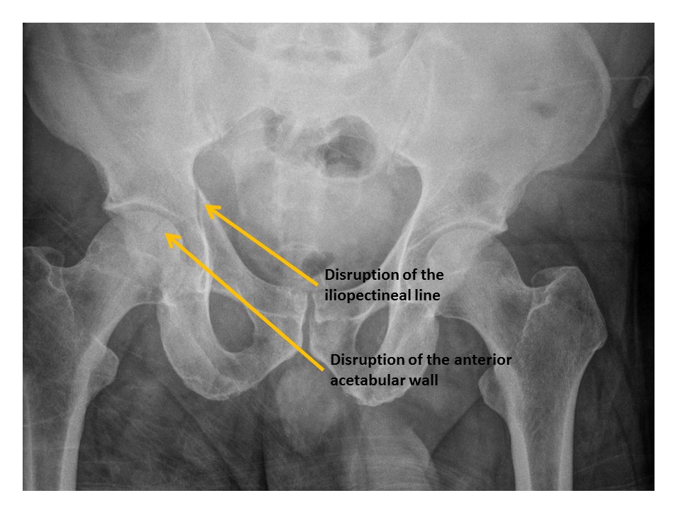 Anterior walls of the acetabula are disrupted. [Yes/No]