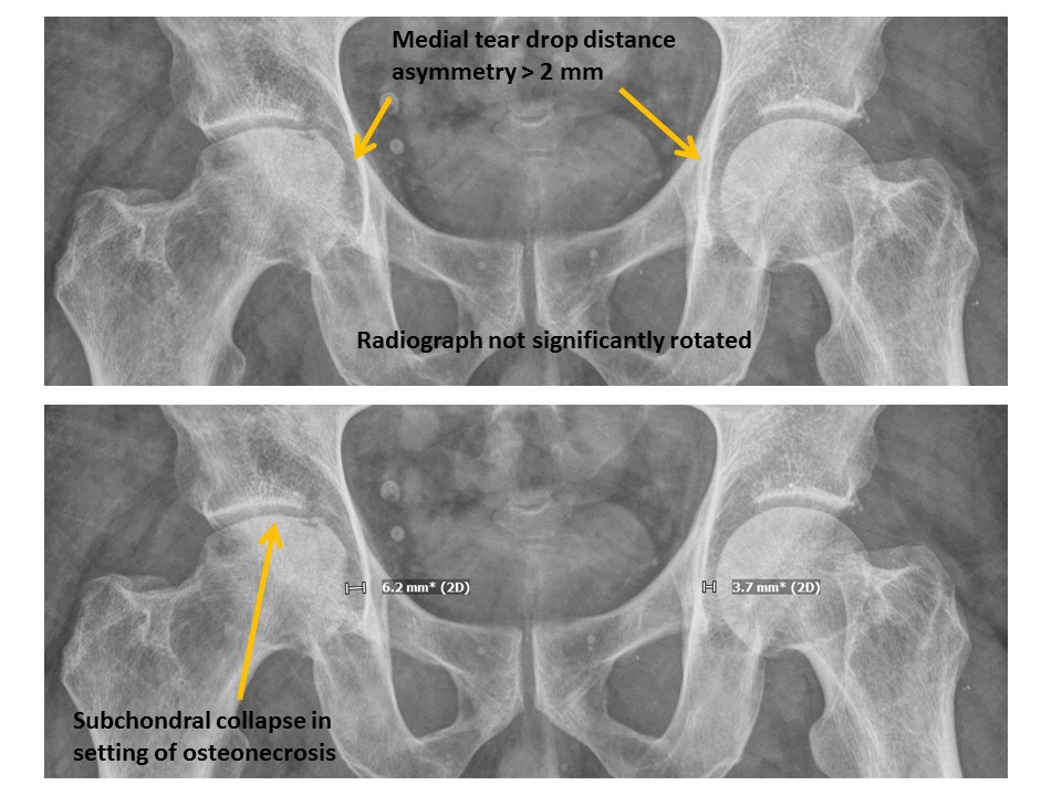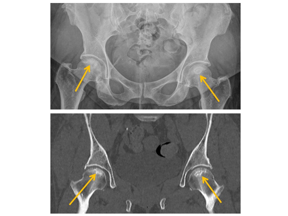 There is abnormal osseous density of the femoral heads. [Yes/No]