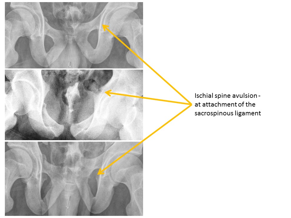 There are avulsion fractures at the ischial tuberosities. [Yes/No]