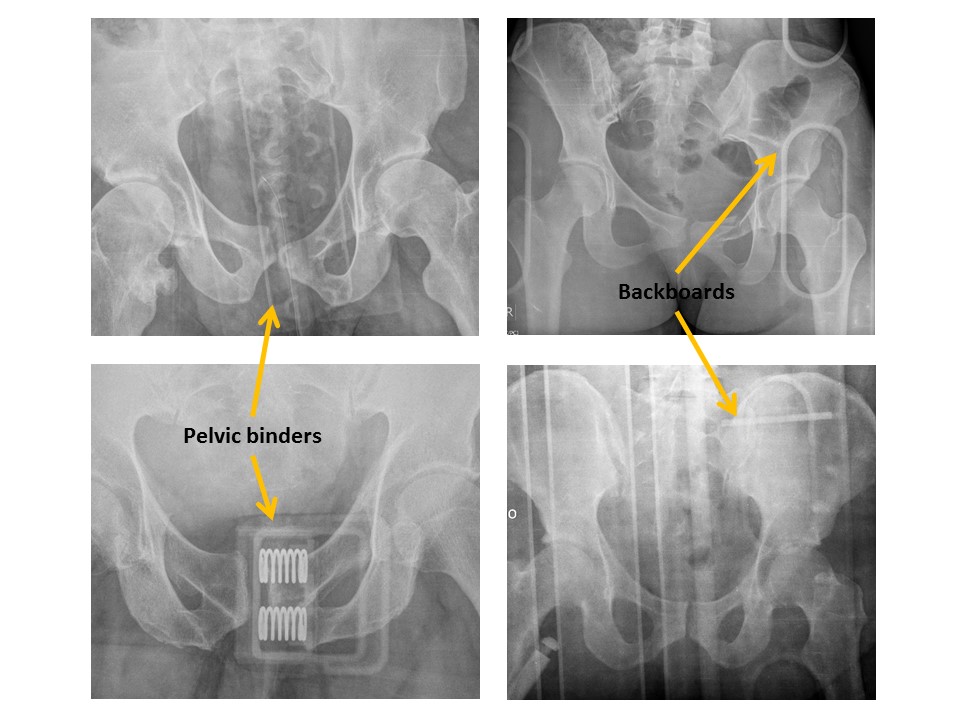 There are external structures overlying the patient’s pelvis, such as a backboard. [Yes/No]